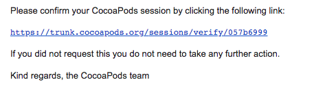$ pod trunk register myEamilAddress@gmail.com mySamplePodsTrunk --description=“mySamplePods.PG"