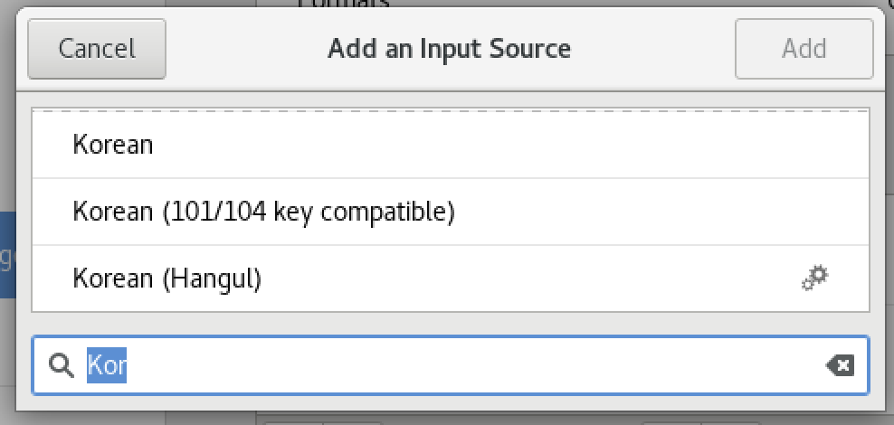 여기서 한글을 선택하면 오른쪽처럼 한글 모드(Hangul mode) 를 켜주면 된다.