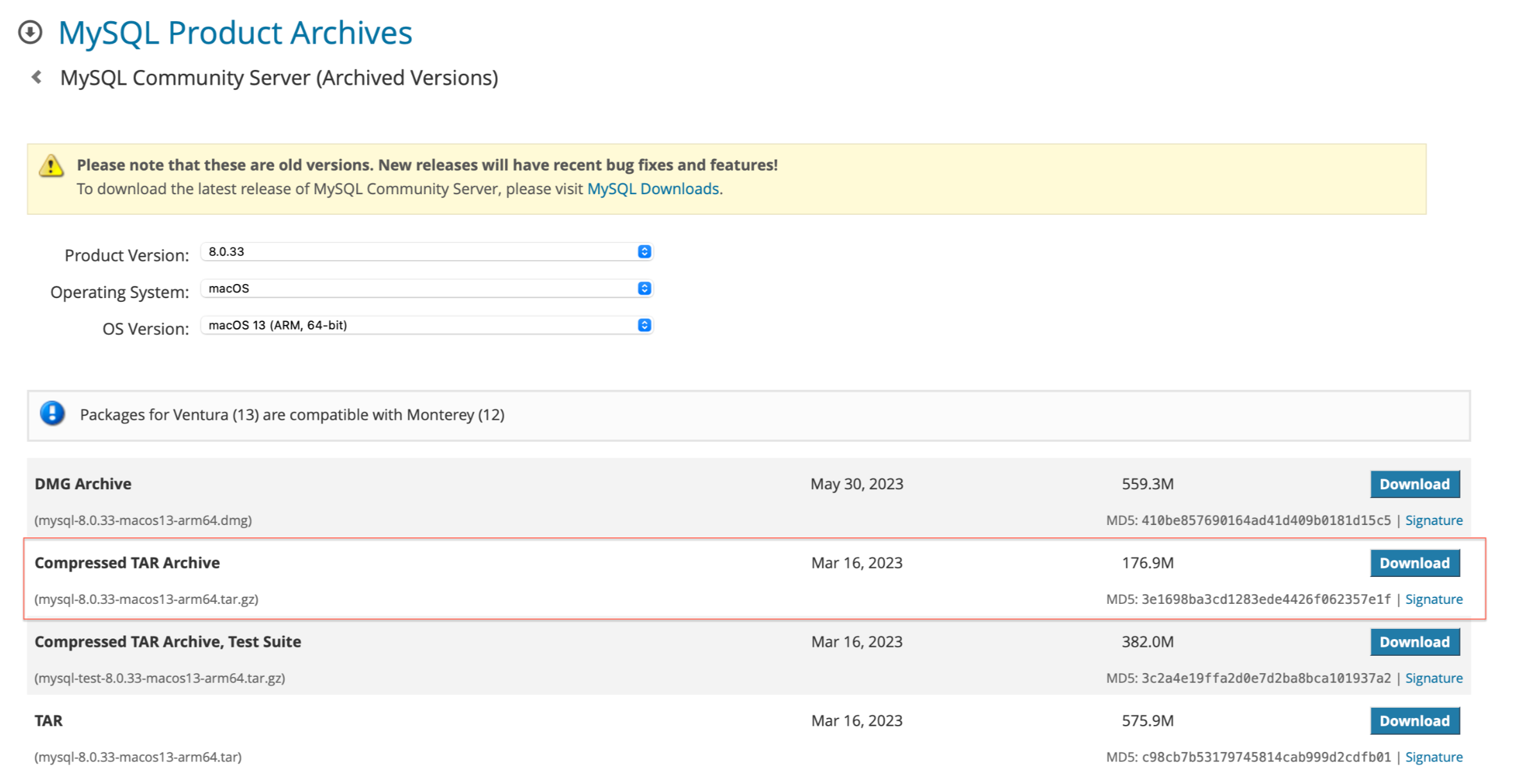 MySQL :: Download MySQL Community Server (Archived Versions)