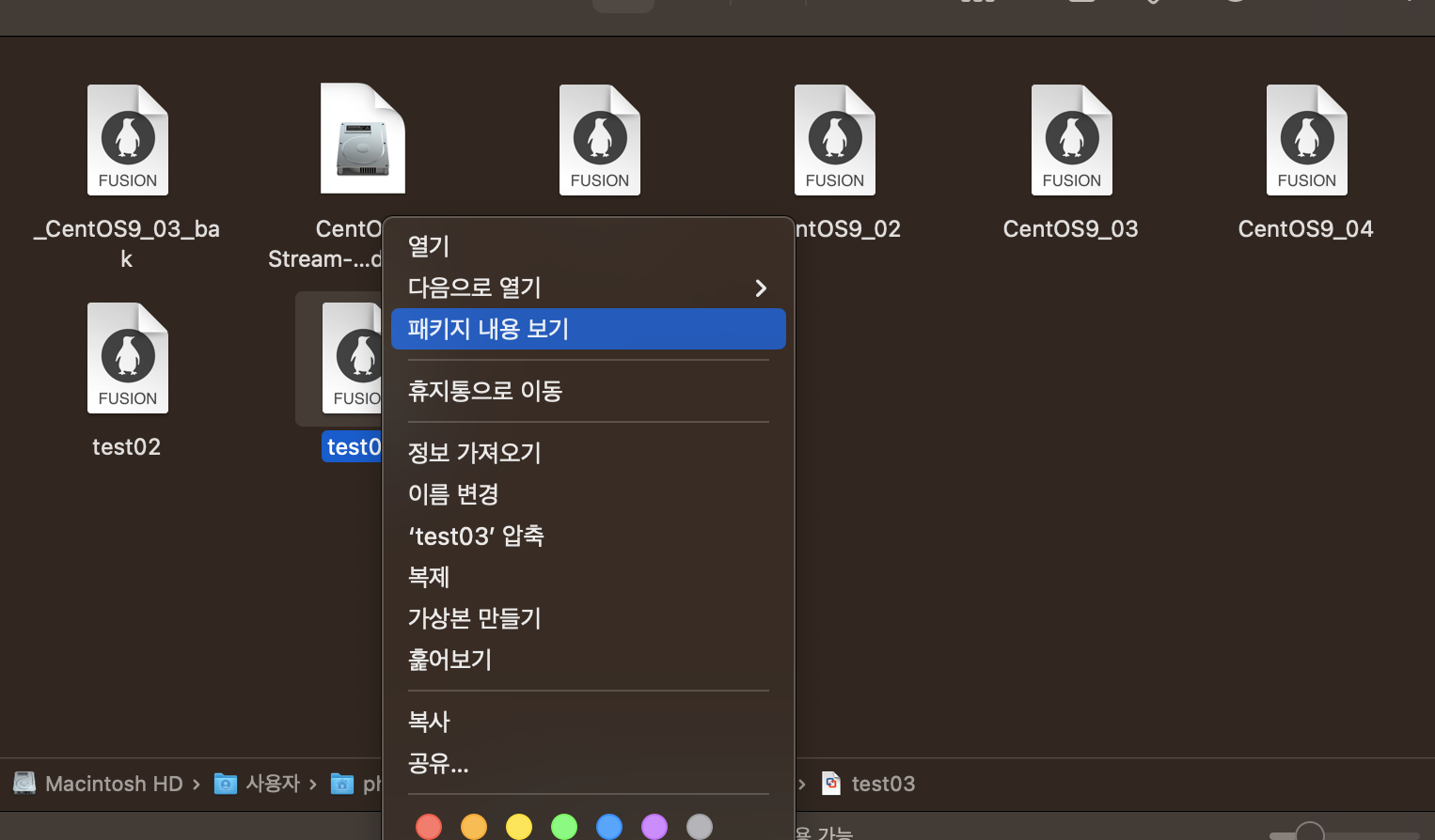 - 화면 상단바를 보면 test02이라는 이름으로 실행되어, OS 종료후 VMWare 실행창 화면에서 Rename 후 재실행
