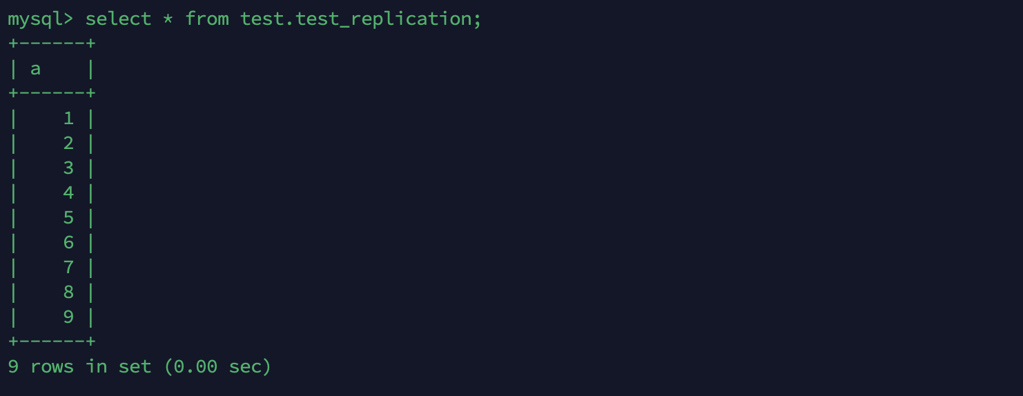 - Master 에서 인서트한 데이터가 제대로 동기화가 되었는지 확인해봅니다.
