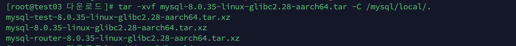# mysql-8.0.35-linux-glibc2.28-aarch64.tar.xz 압축 풀기