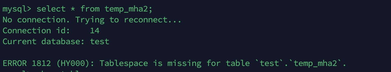 mysql> alter table temp_mha2 import tablespace;