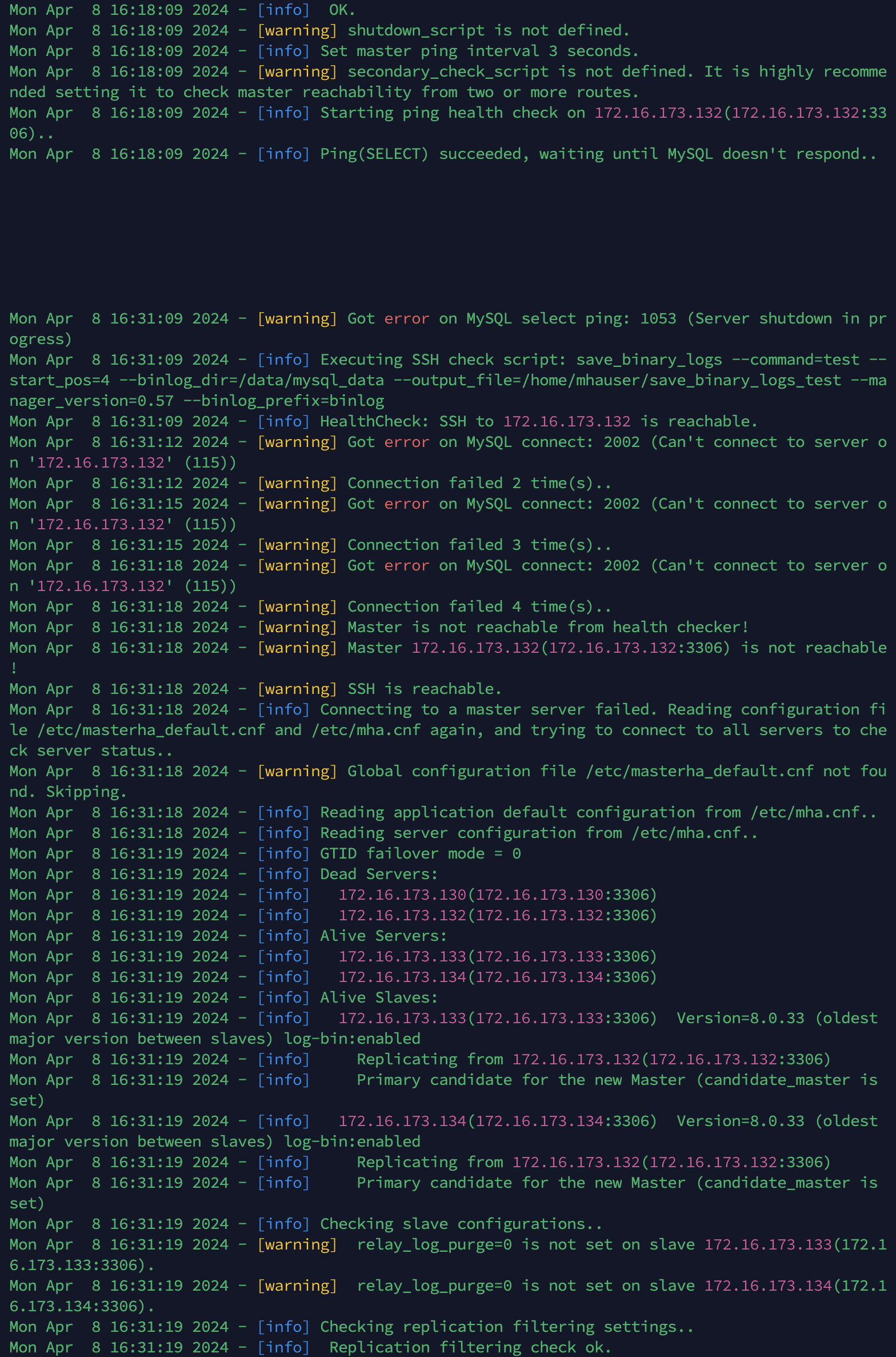 - slave 서버가 죽어도 mha에는 아무 반응이 없습니다.