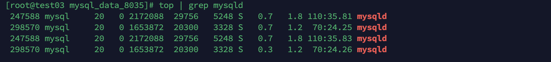 $ top | grep mysqld # %cpu, %mem