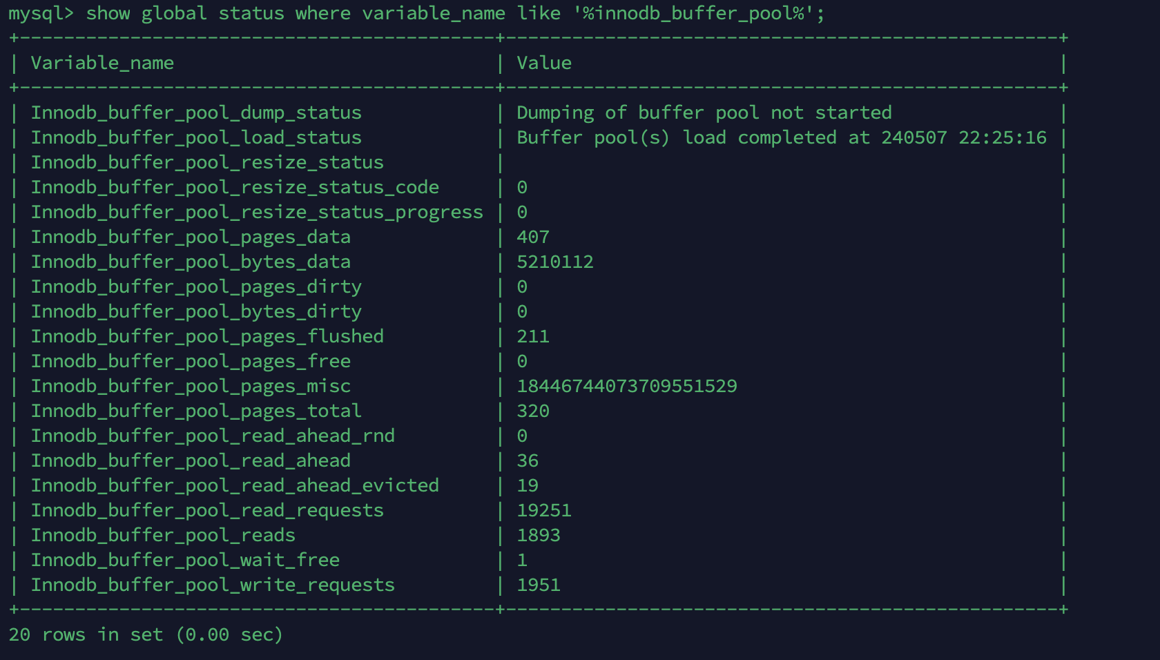 mysql> show global status where variable_name like '%innodb_buffer_pool%';