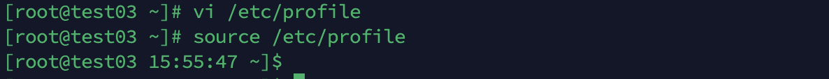 15:55:47이 찍힌 시간은 위 source /etc/profile 의 처리가 끝난 시간라고도 볼 수 있습니다.