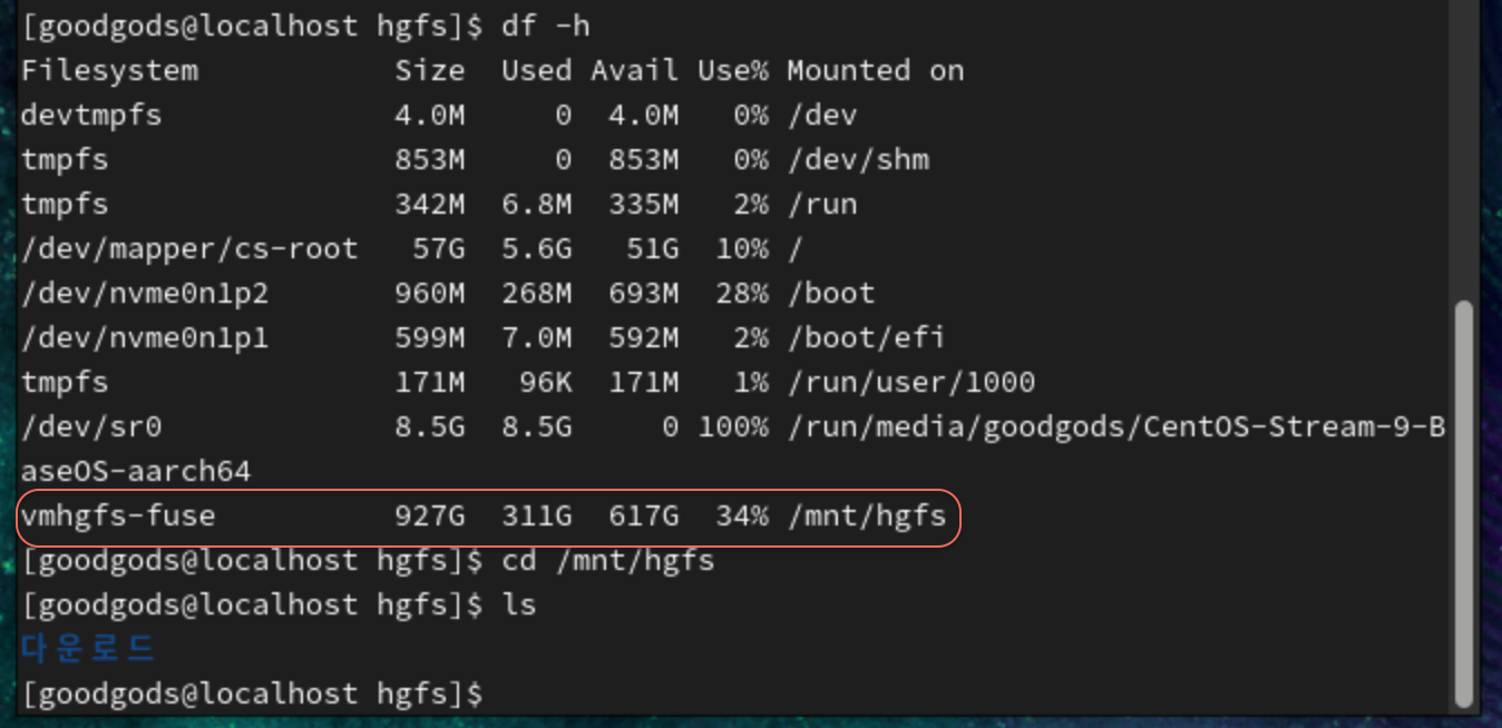 (4) 확인(df -h)